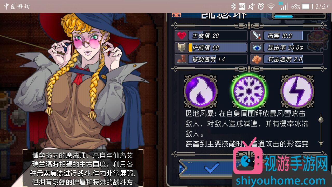 凱瑟琳是個盾較厚類角色,血20,盾60,酷似元氣騎士里的法師(4血6盾,而且三個技能和凱瑟琳竟然元素屬性都一樣是冰火電),移速也不快,僅為1.4(原因極有可能是因為穿著高跟鞋......個人喜好我們不怪她),這說明凱瑟琳的容錯率并不算太高,如果破盾的話就需格外小心,否則上一秒還活著下一秒光速去世都有可能,但八十藍晶石的價格讓零氪黨有了另一個選擇(有肝就行)