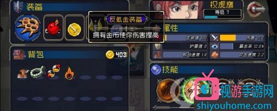 2、反氛金裝備金幣攢的多,傷害就高,加成普攻,非常適合幻影流權虎鷹,手殘必備。