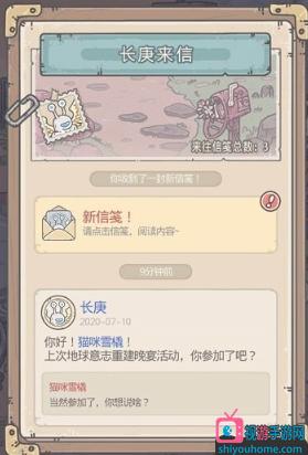 3、在郵箱中,我們能收到來自長庚的信,與他對話之后,它就會上門過來發禮物。