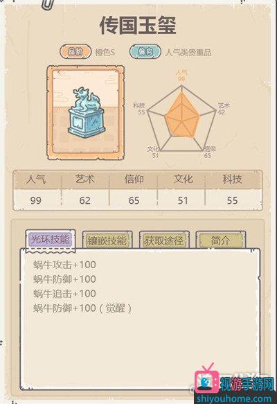 3、鑲嵌技能:置于華夏博物館,賦予效果:博物館評分+300 置于華夏博物館,賦予效果:購買專家手札時,勛章消耗降低300
