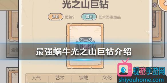 光之山巨鉆是不是聽(tīng)起來(lái)就很奢華呢,它也是最強(qiáng)蝸牛中的S級(jí)貴重物品,下面就讓小編給大家介紹下貴重品光之山巨鉆的相關(guān)內(nèi)容吧!