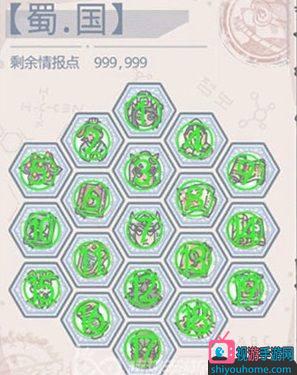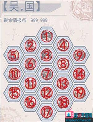 國家順序:蜀國,吳國,魏國(蜀國黃月英有情報點加成,吳國大小喬是威望)