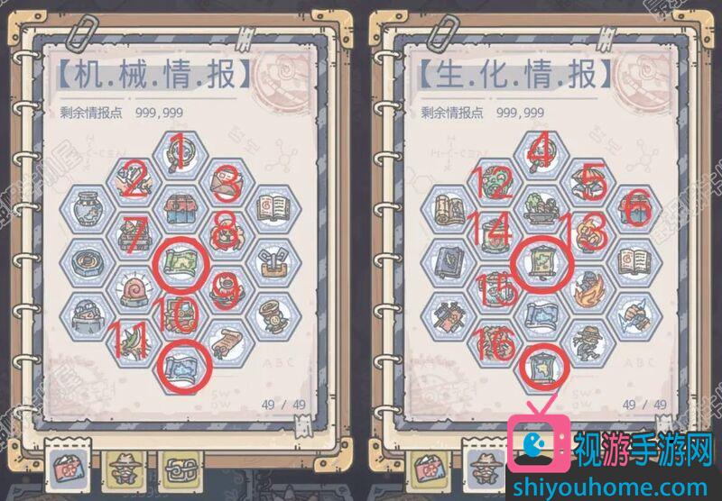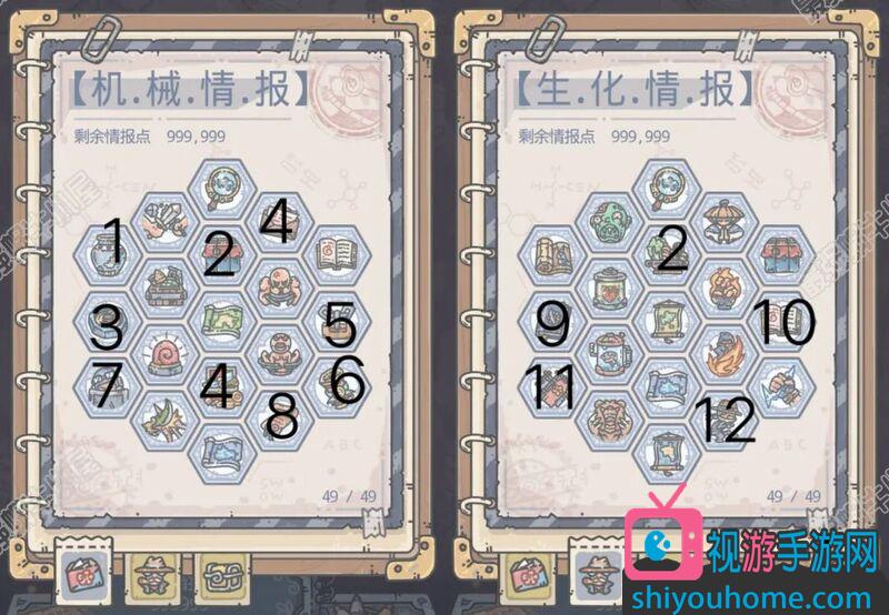 7.開啟可獲得3個米國的探索裝備,加攻防的。這個我沒有加入加點順序,主要是他不給情報點加成。而且想要合成最高級的米國裝備還有一個問題,就是米國卡圖嚴重,可能無法開啟米國前期新的地圖,開啟不了新地圖就開啟不了紫色卡片,而有一個米國裝備就需要一個紫色卡片去兌換。出現這種情況的時候就可以先學習3和9,或者第二頁第三行第一個。