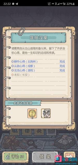 2、在完成匡扶漢室特殊事件后即可與諸葛亮進行書信交流,需要玩家注意的是,必須要將所有的情報任務完成后再去升級諸葛亮的等級,在游戲中情報解鎖的速度和獲得諸葛亮并沒有關系,將諸葛亮升到滿級即可獲得;