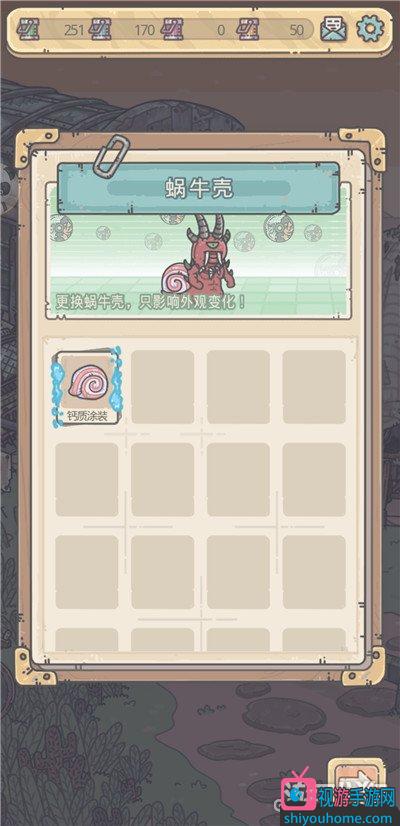 首先蝸殼的位置就在蝸牛屬性界面的第二格,有一個鮮艷的蝸牛殼,那就是蝸殼系統的入口。